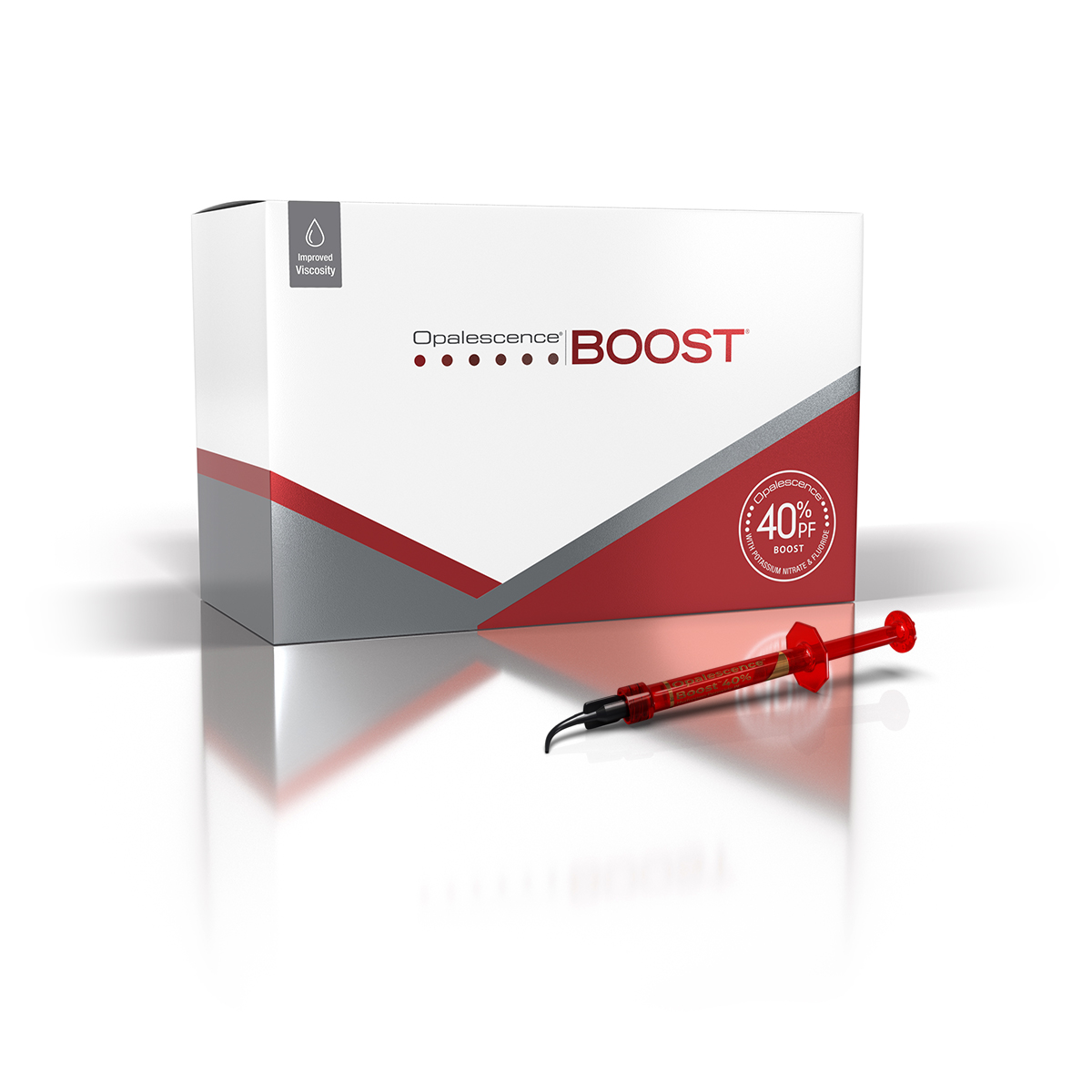 Opalescence Boost è un gel di Perossido di Idrogeno al 40% con pH neutro per la massima efficacia e sicurezza. Dopo l'attivazione, Opalescence Boost viene applicato direttamente dalla siringa. Il flusso è uniforme e non cola. Il colore rosso intenso facilita il corretto posizionamento e garantisce l'eliminazione completa. Sono consigliate due applicazioni da 20 minuti per ogni seduta, per un tempo di trattamento totale di 40 minuti. È possibile effettuare un terzo trattamento da 20 minuti se non sono stati raggiunti i risultati voluti e se il paziente non avverte ancora sensibilità. Non superare le tre applicazioni per seduta.
