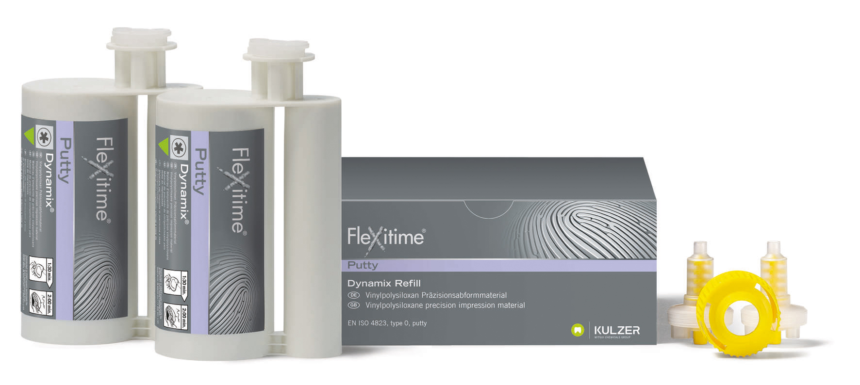 Materiale da impronta – ricambio 2 cartucce da 380 ml. + 2 puntali + 1 anello di fissaggio 66035991/1:3 KulzerFlexitime è il materiale per impronta VPS di Kulzer, il cui sviluppo si è basato tenendo conto di questi fattori di successo. Grazie al bilanciamento delle proprietà fisiche clinicamente rilevanti, Flexitime permette di prendere sempre impronte accurate.